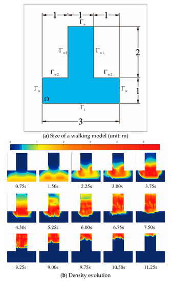 is set (see Equation (14)). The inflow stops enter at 8 s, and the pedestrians spend 40 s finishing the travel. We can infer from
