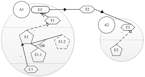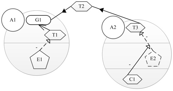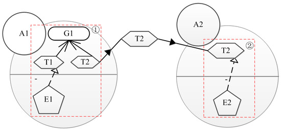 Risk restraint refers to the fact that the risk could be inhibited when transmitted to another unit. In Figure 6, the risk consequence of the risk unit ② attached to the carrier can be transmitted to the risk unit ①. However, because the actor A1 has two ways to achieve goal G1 (the task T1 and the task T2), when the task T2 cannot be executed, the task T1 can ensure the completion of the goal. That is to say, the risk consequence transmitted from the transmitter can be restrained to a certain extent.