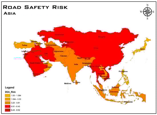 Road safety of Asia-DEA-method-based risk level of the Countries.