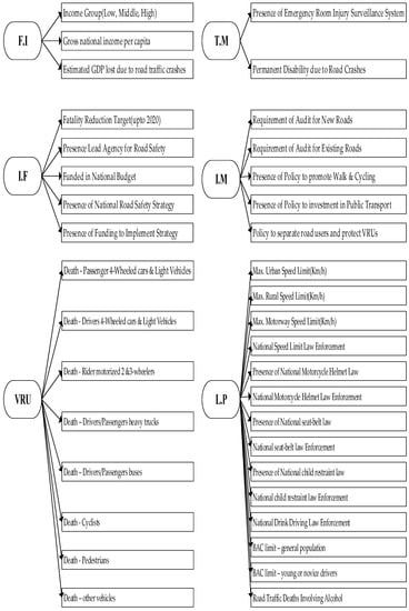 During the application of SEM in the field of road safety, “accident location (where the accident took place), pavement type, horizontal alignment, vertical alignment, vehicle type, driver’s gender, driver’s age, road surface condition, the day (weekend or weekday), weather condition, day or nighttime were modelled against the number of deaths, the number of injured persons, the number of involved vehicles, and the number of damaged vehicles. Findings end up with the analysis that road factors, driver factors and environmental factors were strongly related to the accident size” []. A similar type of analysis was conducted to evaluate the relationship between accident severity and accident type [], between gender, anxiety, depression, reward sensitivity, sensation seeking propensity and risky driving [], between psychological symptoms, sensation seeking, aggression, dysfunctional drinking habits, aberrant driving behavior, speed and accidents []. So SEM is an established technique for crash data analysis for road safety research. Through the application of SEM, we can analyze the large data variables related to road safety situations in Asian countries. Analysis of risk level with reference to road safety indicators will be helpful in understanding road safety performance of countries.