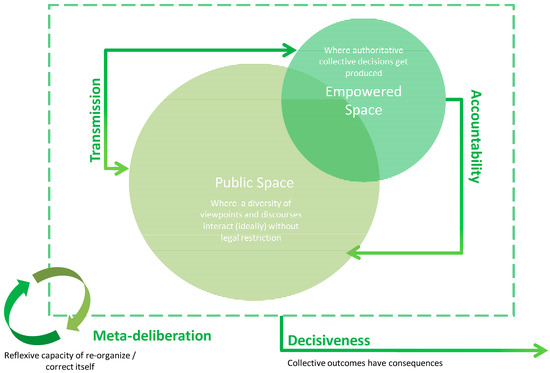 The deliberative system. Source: Dryzek [15]; Dryzek and Stevenson [17]. Designed by the authors.