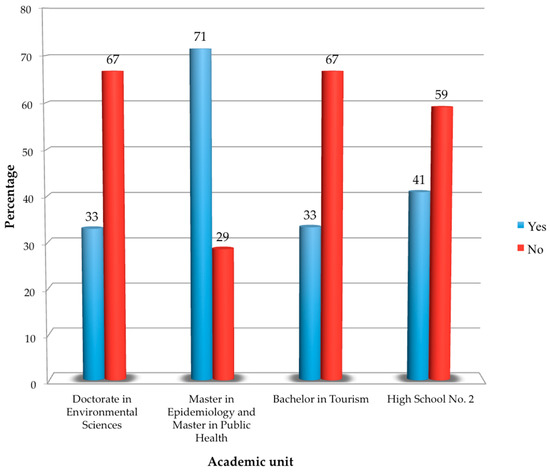 This research using quantitative and descriptive analysis was developed with the participation of teachers and students from four academic units of the UAGro, located in the city of Acapulco, Guerrero. This study involved three graduate programs, an undergraduate program, and one high school: the Doctorate in Environmental Sciences of the Sciences for Regional Development Center (Centro de Ciencias de Desarrollo Regional) (CCDR), a Master in Epidemiology and a Master in Public Health of The Tropical Disease Research Center (Centro de Investigación de Enfermedades Tropicales) (CIET), a Bachelor in Tourism, and a high school (Preparatoria) No. 2.