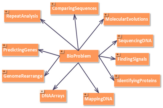 - Instance “SequenceAlignment”The DNA sequence alignment is one of the most famous bio problems. It is classified under “ComparingSequences”. It can be solved using either combinatorial pattern matching or divide-and-conquer or dynamic programming algorithms (as shown in Figure 4).
