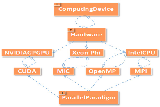 Relation between ComputingDevice, ParallelParadigm, and Hardware Subclasses.