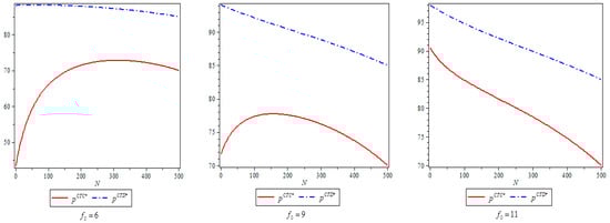 From the first order conditions of Equation (14), we have . However, to ensure the profits of the supply chain with the two-part tariffs contract are equal to those in the centralized system, we set , that is , then the retailer’s profit can be denoted as . Moreover, to make the retailer willing to accept the manufacturer’s two-part tariff contract terms, the retailer’s optimal profit must meet the condition , so the fixed fee paid by the retailer to the manufacturer needs to satisfy .