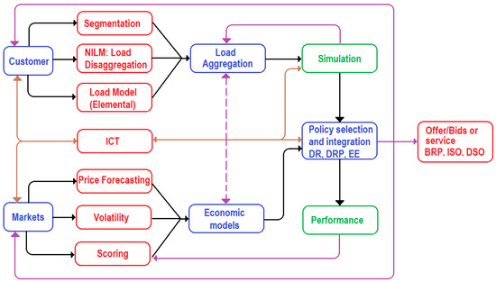 Moreover, other concerns arise: the provision of some feedback to customers; to guarantee the security of that information (education and cyber-security concerns [11]); the way to build demand packages, enabling the performance of aggregators; their relationship with Curtailment Service Providers (CSP), Balance Responsible Parties (BRP) or Load Serving Entities (LSE) [12]; and, finally, the improvement of DR cost-effectiveness (response optimization, ICT management, price prediction, market synergies between DR and Energy Efficiency, ...). Due to the aforesaid arguments, DR is so complex that it is difficult to achieve an optimal solution. This complexity is recognized by different actors in energy markets [6]. It is necessary to develop incremental solutions to solve this complexity and encourage a willingness from consumers to make demand resources available. This is the idea and main concern of this paper.