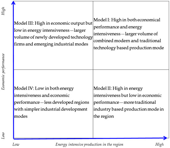 Investigation lens for regional production modes: economic performance vs. energy intensiveness.