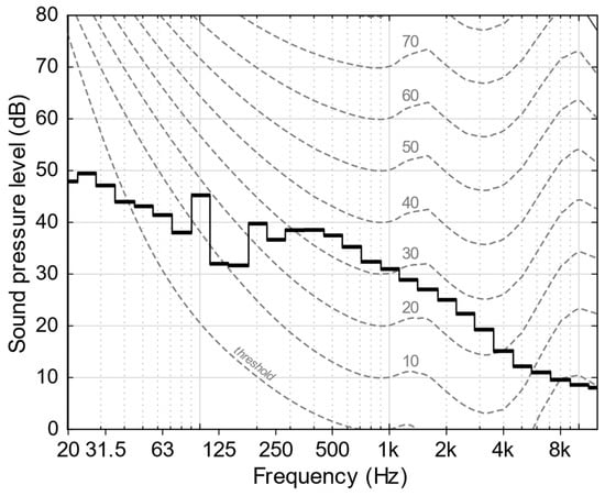 - International Organization for Standardization. ISO 226:2003—Acoustics—Normal Equal-Loudness-Level Contours; International Organization for Standardization: Geneva, Switzerland, 2003. [Google Scholar]