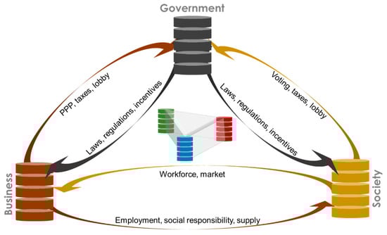 This commentary builds on a wide body of literature that focuses on the interactions between government, business, and society; and it categorizes these players into three types, accordingly [39,40,41,42,43,44]. The commentary highlights the way in which a better understanding of those interactions can be useful in the context of addressing resource hotspots. The following section explores those dynamics. We acknowledge that this representation is a simplification of complex categories of players and interactions which this commentary will not expand on.