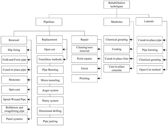 - Water Environment Federation. Existing Sewer Evaluation and Rehabilitation, WEF Manual of Practice 3rd ed.; WEF Press—Water Environment Federation: Alexandria, VA, USA, 2009. [Google Scholar]