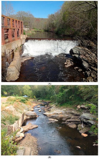 - Massachusetts Department of Ecological Restoration (MA DER) River Restoration: Dam Removal. Available online: https://www.mass.gov/river-restoration-dam-removal (accessed on 10 November 2017).