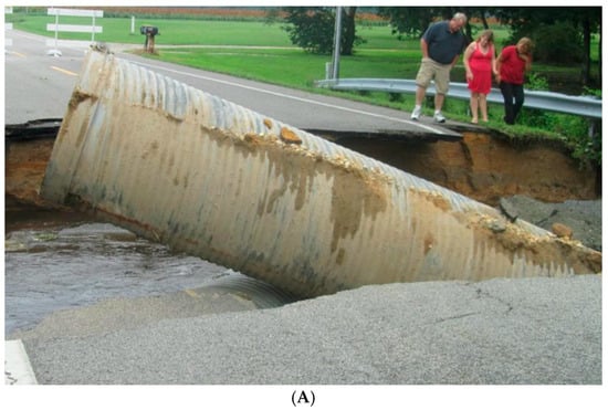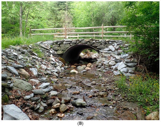 - Gillespie, N.; Unthank, A.; Campbell, L.; Anderson, P.; Gubernick, R.; Weinhold, M.; Cenderelli, D.; Austin, B.; McKinley, D.; Wells, S.; et al. Flood Effects on Road–Stream Crossing Infrastructure: Economic and Ecological Benefits of Stream Simulation Designs. Fisheries 2014, 39, 62–76. [Google Scholar] [CrossRef]