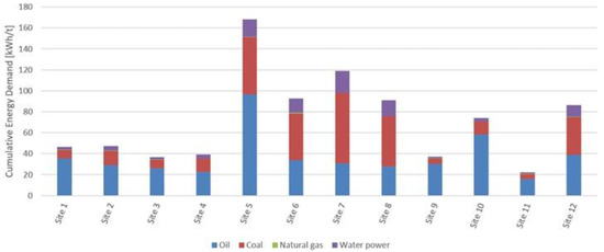 Naturally, these trends are also reflected in the graphs for cumulative energy consumption (Figure 12) and the global warming potential (Figure 13). Companies which consume a higher proportion of non-renewable energy sources (oil, coal, natural gas and water power) during the production process show a greater global warming potential, as indicated in Figure 13.