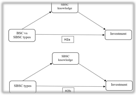 SBSC knowledge helps provide insights into how and when parts of scorecard data should effectively be integrated into decision-making. This includes environmental investment decisions. Therefore, managers who do not possess sufficient SBSC knowledge may make poor investment decisions. Based on this literature, this study hypothesizes that SBSC knowledge will increase awareness of the SBSC type measures that will lead to better environmental investment decision-making [19]. Moreover, SBSC knowledge can reduce the confusion between SBSC types, since increasing the quantity of information in a five-perspective SBSC may increase the chance of an information overload more than the information in a four-perspective SBSC [2]. The following hypotheses are proposed as represented in Figure 2. Hypothesis 2).