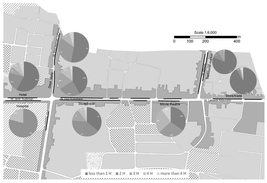 Notably, the highest volume of GARDENA is attributed to motorcycles, as shown in Table 5. On the survey day, only two passenger cars (23 m2) were parked on the segment. Regarding passenger cars, their volume was the highest on the segment of GALERIA Mall 2, the major upscale shopping area in the city, both in number and area. This indicates that in the city, the passenger car is generally regarded as a luxurious good and for the utilitarian purpose of transportation, the motorcycle plays an important role [18,19]