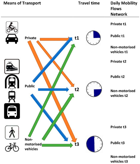 The sustainability of a contemporary city and its evolution depends on the ability of institutions to harmonise resource use, infrastructure, and social investment, and technological development [1]. To develop policies for the sustainability of metropolitan areas it is essential to identify strategies for the sustainability of nations, continents, and the planet as a whole [2]. Recent studies show increasing urbanization rates caused by a large-scale population shift from rural and marginalized areas to cities [3]: in 1800, only 2% of the world’s population lived in urban areas. This percentage rose to 14% in 1900, 29% in 1950, 47% in 2000 and over 50% in 2008 [4]. It is estimated that by 2050, 70% of the global population will be living in urban areas, which will increase to 100% by the end of the century [5]. In Europe almost three quarters of the European population lived in an urban area in 2015, and the share is projected to rise to just over 80% by 2050 [6]. The flows, as generated by new residents and/or city users as in the case of commuting, are the basis of the new economic, political, and social geographies that influence the development of new regional and continental landscapes [7,8,9].