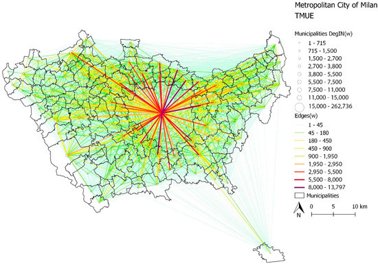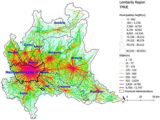 Lombardy Region (Milan) Total Moving Unit Estimator (TMUE), the edges (w) are rappresented by Link (w) (source: authors’ elaboration).