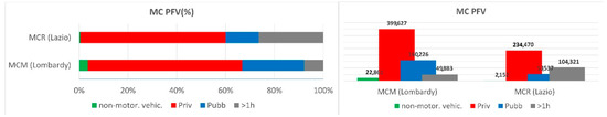 It is important to note that in the MCM the largest commuter flow occurs in the “t2” travel time (16 ÷ 30 min), whereas which it occurs in the “t3” (31 ÷ 60 min) in the MCR.