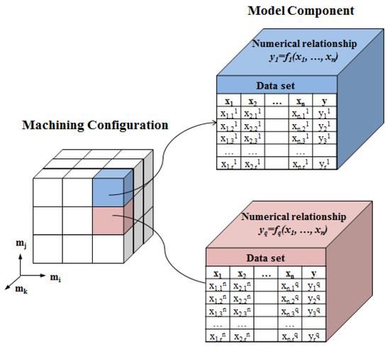 This section introduces the process to create predictive models based on the PFD items identified and categorized in the previous section. Specifically, this process outputs a set of numerical functions, y = f(x1, …, x4), which represent predictive models for specified MCs. Here, we need to: (1) extract instances of the PFD items from accumulated machining datasets; (2) prepare training datasets using the instances of the PFD items; (3) compute numerical functions, i.e., find correct coefficients of numerical functions through regression analysis of training datasets; and (4) measure performances of the numerical functions.