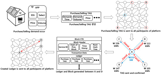 The energy-transaction platform based on the tag embedded in the blockchain will allow for a trade that considers the current price rate of energy in each energy domain, purchase demand rate, sales demand rate, and trade object and trade protocol selection. This information is then permanent, transparent and secure, making sure that future trade decisions and tag productions are stable, thus maintaining the constant choice of high-quality energy and low-cost energy for a more sustainable smart home. All transactions will be made with KRW, instead of utilizing cryptocurrency.