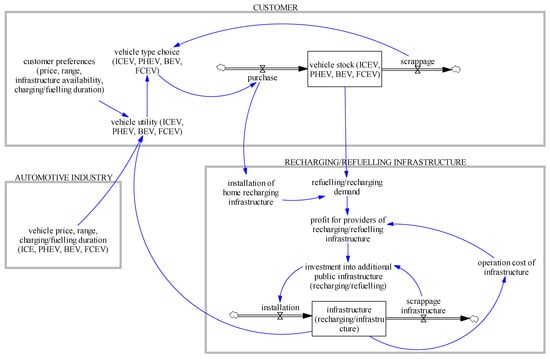 - Kieckhafer, K.; Walther, G.; Axmann, J.; Spengler, T. Integrating agent-based simulation and system dynamics to support product strategy decisions in the automotive industry. In Proceedings of the 2009 Winter Simulation Conference (WSC), Austin, TX, USA, 13–16 December 2009; pp. 1433–1443. [Google Scholar]