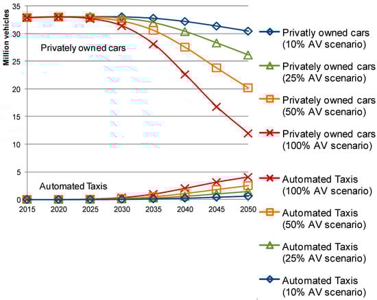 - Greenblatt, J.B.; Saxena, S. Autonomous taxis could greatly reduce greenhouse-gas emissions of US light-duty vehicles. Nat. Clim. Chang. 2015, 5, 860–863. [Google Scholar]
