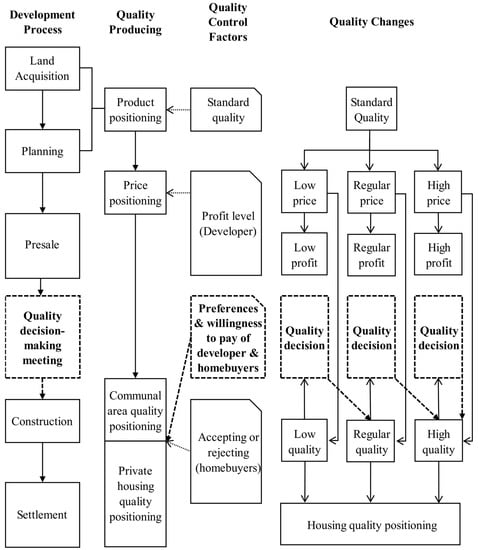 HQ has been a long-standing concern for both homebuyers and developers. However, to date the developers have exclusively determined the HQ, and homebuyers have only had a passive choice of whether to accept such HQ. Asian housing supply markets largely adopts the presale housing system, under which developers are able to verify future occupants before initiating construction, thereby enabling them to provide customized designs and differentiated quality items in order to meet user demands and value, as well as enhance HQ. In conventional presale housing systems, HQ depends on the developers’ mentality and expectation for profits, while homebuyers are left with only the choice to accept or reject the provided HQ. Under extreme information asymmetry, paradoxical and irrational patterns of supply and demand are often exhibited in presale housing markets. A complex relationship exists in homebuyers’ perception of HQ, the price they are willing to pay, and developers’ expected profits.