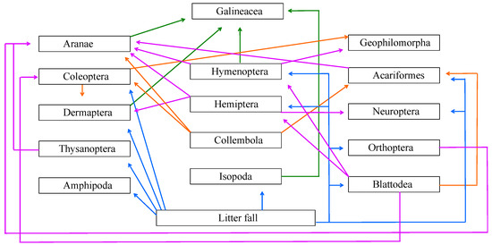 Diagram of hypothetical arthropod trophic web in urban forests of São Paulo City based on the biodiversity of the three forests of this study.