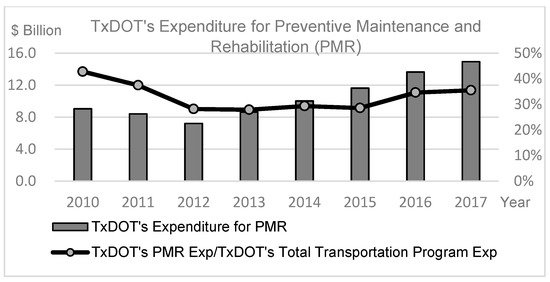- Official Website of Texas Department of Transportation. Transportation Program Expenditures Fiscal Year 2017. Available online: https://ftp.dot.state.tx.us/pub/txdot-info/library/reports/expenditures/fy2017.pdf (accessed on 17 January 2018).