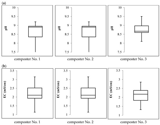 29]. These analyses were conducted using ground air-dried samples of compost sieved through a 16 mm mesh. The electrical conductivity and pH of the samples from the final compost were determined in a water extract at 1:5 vol. [