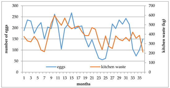 Egg production varied over the 36-month period (see