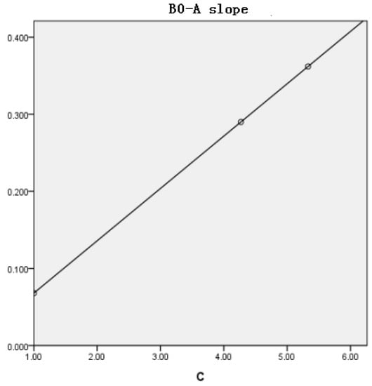 ΔR2 and the coefficients were used to evaluate the efficiency of regression. It can be seen from Table 7 that the three equations of ΔR2 and the coefficients of B0*C are significant, which indicates that the regulation effect exists. Furthermore, we judged the moderating direction by drawing the moderating regression figure. Figure 2 shows regression result. The abscissa represents the value of the moderating variable and the ordinate represents the correlation coefficient between independent variable and dependent variable. According to Figure 2, we can see that the greater the C is, the greater the correlation coefficient is. This means the moderating variable positively moderates the relationship between technical–nontechnical element comprehensive synergy and collaborative innovation performance. This supports H7.