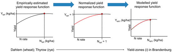 Yield-zone-specific yield response functions were modelled in three steps: (i) estimation of yield response functions based on the empirical data; (ii) transforming them by the normalization approach and (iii) transferring the normalized yield response functions to the yield-zones in Brandenburg (Figure 1).