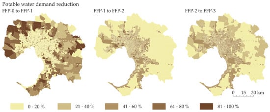 Spatial analysis of the differences in annual potable water demand between FFP-0 to FFP-3.