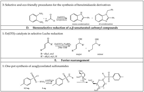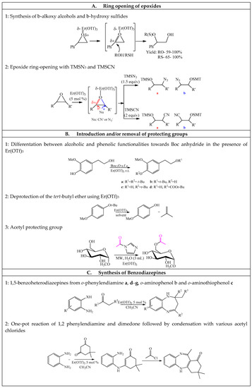 - Dalpozzo, R.; De Nino, A.; Nardi, M.; Procopio, A. Erbium Triflate a Very Powerful Catalyst. Mini-Rev. Org. Chem. 2009, 6, 86–94. [Google Scholar] [CrossRef]