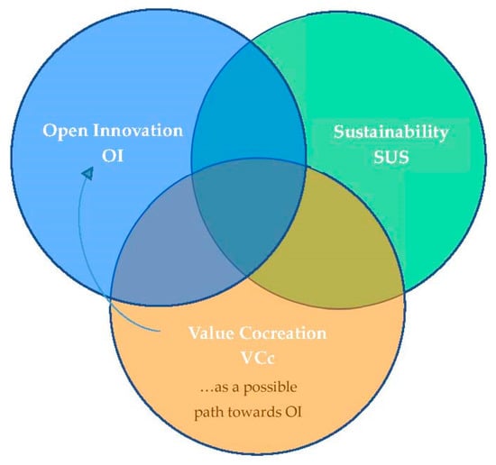 A theoretical framework based on multiple paradigms of Sustainability (SUS) [17] Open Innovation (OI) [13] and Value Cocreation (VCc) [23] is provided (Figure 1). The multiple paradigm approach “stems at least partially from recent writings in qualitative research methodology” [27] (p. 23) and is very apt in this context considering the qualitative nature of the work. Under the holistic perspective, different but integrated viewing angles help one to better comprehend the observed phenomenon.