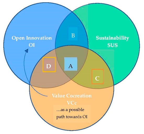 The framework that is based on the multi paradigms of OI, VCc, and SUS proposed in this work represents a good lens through which to read a real phenomenon. The virtuous interaction among OI, VCc, and SUS introduced in Figure 1 can explain important synergies in perceiving common goals when cooperating on innovative projects.