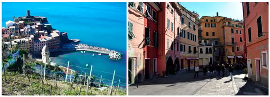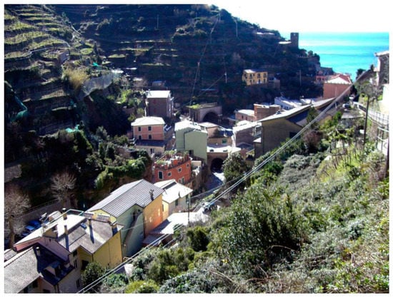 A conference was held in May 2017 entitled “La Cultura da salvare: beni culturali e rischi naturali. La Mappa e il Piano nazionale degli interventi” The Culture to Save: cultural goods and natural risks. The national map of and plan for interventions. In it, the structure of the Presidency of the Council’s “Italia Sicura” (Secure Italy) Mission against hydrogeological instability noted some impressive data for a country that holds the world record in cultural goods (51 World Heritage Sites of United Nations Educational, Scientific and Cultural Organization—UNESCO—and more than 200,000 architectural and archaeological goods and monuments, 3400 museums and about 2000 archaeological areas and sites). There are 40,393 cultural goods at risk of flooding in Italy and another 38,829 at risk of landslides, of which 10,909 are classified with a high and very high level of danger. In addition to the goods in the large cities (more than 3000 in Rome and nearly 1300 in Florence), dozens of towns are affected by the serious phenomenon of instability (Civita di Bagnoregio, Volterra, Pienza, Rupe di San Leo, etc.). Many territories have a widespread presence of goods, including those that are well-known (La Valle dei Templi, in Agrigento; the Cinque Terre National Park; the Amalfi Coast) and lesser known (Roccascalegna) [1]. Through the “Italia Sicura” National Plan, the Italian state aims to prepare a large endeavour to prevent hydrogeological instabilities and mitigate the risk to cultural goods, with about 10,000 works expected, of which about 1300 are already underway. All of these interventions should be inspired by the “Linee Guida per le attività di programmazione e progettazione degli interventi per il contrasto del rischio idrogeologico” (Guidelines for planning and designing interventions to counter hydrogeological risks) [2]. The guidelines are aimed to provide operational indications when planning interventions and to open interaction between technicians and the Regions, considering the territorial context and the economic and social sustainability of the interventions. This approach, which is very focused on the multi-functional nature and quality of the interventions, risks being ineffective if it does not address all the natural and anthropic elements that come together to define the conditions for risk and to prefigure the different mitigation strategies. As highlighted by Roberto Gambino [3], when choosing interventions to perform on the territory, the different problems (hydraulics, hydrogeology, ecology and landscape, economy, production, society and culture) should be considered contextually, with inclusive reasoning that foresees recourse not only to regulatory actions but also activities that stimulate, promote and direct the interventions. It is also necessary to prevent the fragmentary nature of proposed and/or completed risk-mitigation interventions. While at a good level, in their implementation, the interventions have often taken for granted the limitation of being too narrow with respect to factors of very significant, extended pressure [4]. In other cases, and not only in Italy, moves to prevent hydrogeological risk have been concentrated instead on securing territories through interventions that are too invasive, such as canal systems, levees, dams, or detention basins. The consequences of this form of intervention include the inevitable impoverishment of the ecosystem, the ceaseless increase in management costs, periodic maintenance and substitution and the risk that this increasingly artificialized environmental and landscape system will collapse [5]. In choosing an intervention to counteract and manage the risk, the question of the culture and the landscape is not at all marginal. This is particularly current in territories where there is a consistent presence of cultural and landscape goods, where the balance between the different systems (environmental, cultural, socio-economic) are more fragile and complex. Hardly ever in situations of hydrogeological instability is it, for example, only the waterway that causes problems, even in conjunction with extreme phenomena due to climate change. It is often a combination of factors whereby the causes of environmental and landscape disasters result in deforestation, thinning of vegetation along the slopes, the abandonment of agricultural lands, and, obviously, the wild covering of land in concrete. In the 2014 National Conference on hydrogeological risk, it emerged, for example, that 28% of the land used for agriculture was lost between the beginning of the 1970s and 2010. As well, it was shown how the abandonment of open spaces is a phenomenon that heavily and cumulatively affects flooding and landslide risks, the loss of biodiversity and the landscape. This is seen in the Region of Liguria, in which 60% of the territory is at risk of landslides, one of the highest percentages among Italian regions [6]. In this region, the abandonment of agricultural cultivation has notably increased the instability of the land, provoking repeated environmental catastrophes over time with very serious damage to people, cities and the landscape. One area particularly affected by these phenomena is the Cinque Terre National Park, a World Heritage Site, along with the town of Vernazza (Figure 1, Figure 2 and Figure 3). In the area of Vernazza, the characteristic agricultural terracing has experienced progressive abandonment since the end of the Second World War. At first, the terraces were left uncultivated and then the least accessible areas were abandoned definitively. These were generally located at the tops of the slopes or where the inclination was very steep, such as along the coastal sector. Then it was the turn of the zones with less favourable exposure followed by those farthest from the inhabited centres and from vehicle-accessible streets. The territory then began a process of degradation and widespread hydrogeo