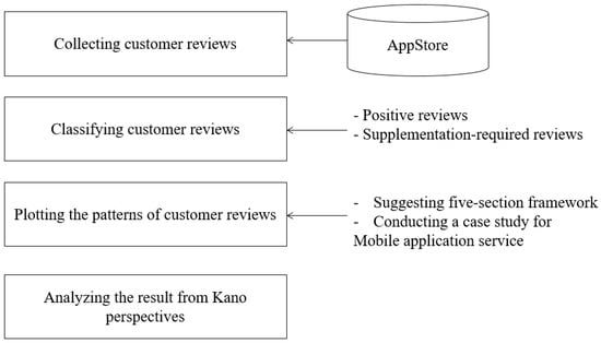 Due to rapid business changes and diversified technological innovation, many services are generated and consumed in a short-term period [1]. In such a fast and volatile environment, seeking sustainability is critical. For this reason, understanding what customers want is a critical task. According to the service-dominant (S-D) logic, the customer is always a co-creator of value [2,3,4]. Since this value creation process is generally conducted in an online marketplace in a recent environment, how to understand customer requirements is considered to be vital. Especially, customers’ bargaining power is significantly increasing, since customers not only diffuse information by online word-of-mouth [5,6], but also share their impressions through several forms of online media such as social network services (SNS) [6].