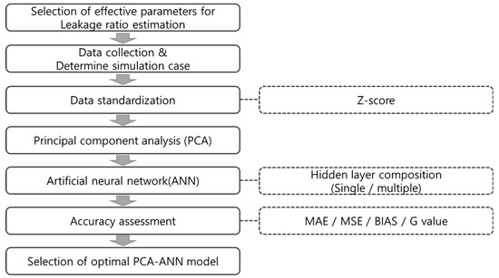 Research flowchart for leakage ratio estimation using PCA-ANN.