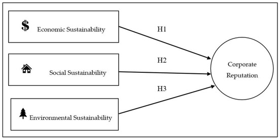 The previous discussion leads us to the research model and hypotheses proposed in Figure 1. Hypothesis 1 (H1) depicts the relationship between economic sustainability and corporate reputation, Hypotheses 2 (H2) directs to the relationship between social sustainability and corporate reputation, whereas, the third hypotheses (H3) depicts the relationship between environmental sustainability and corporate reputation.