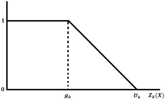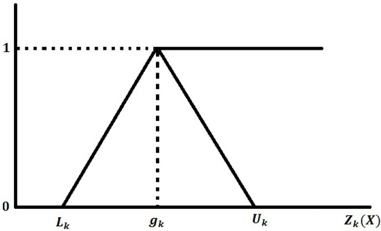 A fuzzy constraint is a subset of X characterized by its membership function . The linear membership function for the fuzzy constraint is given by: