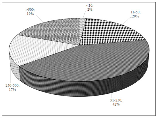The typological analysis of the respondent organizations suggests that the sample mimics and resemble the Portuguese reality concerning business demographics. Mainly small and medium enterprises (SMEs) operating at the product and service-oriented activity sectors answered the survey (Figure 1 and Figure 2).