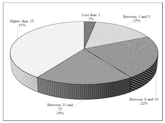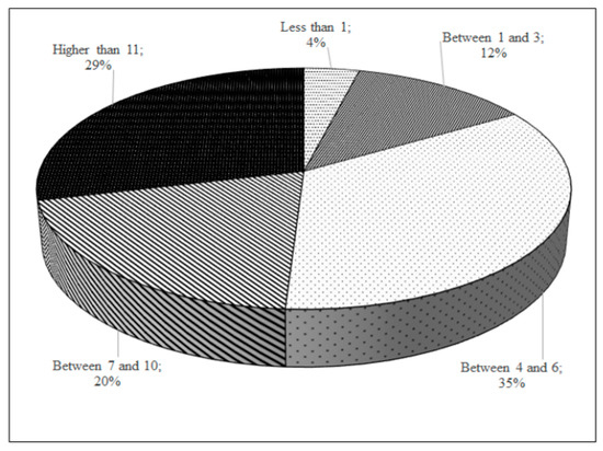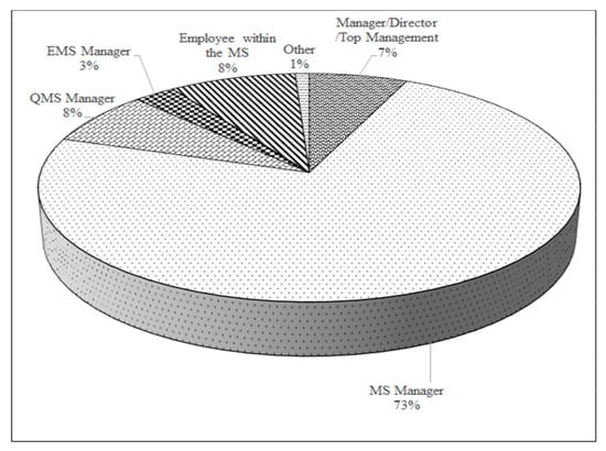Concerning the characterization of the individual respondent responsible for the submission of the survey, it should be pointed out that these were mainly management system managers (Figure 8) that held more than 11 years of experience (Figure 9).