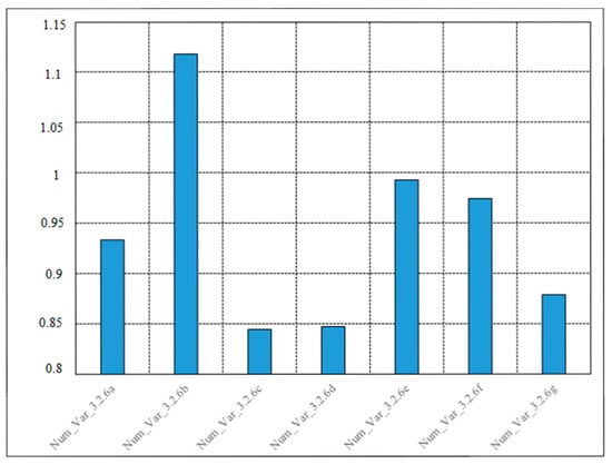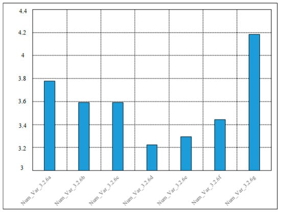 Table 2 presents the items assessed by variable 3.2.6—Benefits from the implementation of the new requirements of the ISO 14001: 2015 edition. Figure 15 and Figure 16 display the summarized results (average and standard deviation). The highest rated benefit pointed out by the surveyed organizations was the “integrated approach with other management sub-systems (Num_Var_3.2.6g)” and the small standard deviation suggests that this is a well consolidated perception from the surveyed organizations. This result is consistent with one of the purposes of the new revision: to improve the compatibility of the standards supported on the Annex SL. Furthermore, one should point out the benefits of “alignment with business strategy (Num_Var_3.2.6a)”, “improved top management commitment (Num_Var_3.2.6b)” and “improved internal and external communication (Num_Var_3.2.6c)”. The lowest rated benefit perceived by the organizations was “less prescriptive requirements and documentation (Num_Var_3.2.6d)”. The benefit of “improved top management commitment (Num_Var_3.2.6b)” presented the greatest standard deviation (Figure 16), suggesting that it is not perceived consistently among the surveyed organizations.