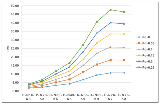 According to the results in Step 1, is set as 0.05 to obtain a better output of ICS. Similar experiments are designed to evaluate the performance of ICS with four different values of : 0.25, 0.5, 0.75 and 1. According to the experimental results (as shown in Table 3 and Table 4, Figure 4 and Figure 5), it is obvious that it is better to set = 0.25 to get a better balance between the solution quality (both %Dev(Best) and %Dev(Ave)) and the computational time (show in Figure 6).