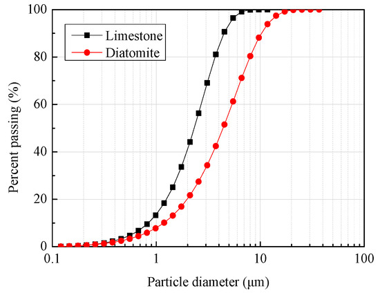 Particle size distributions of diatomite and limestone.