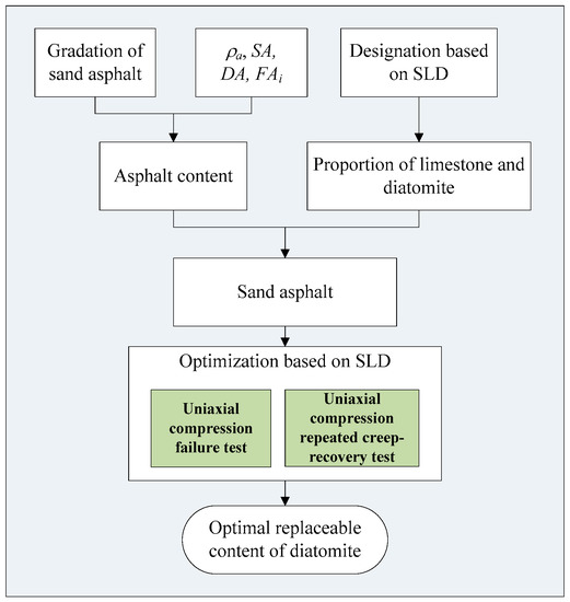 The entire procedure that was used to determine the optimal diatomite content as an alternative mineral additive based on mechanical properties is shown in Figure 6. The optimization procedure is listed as follows: