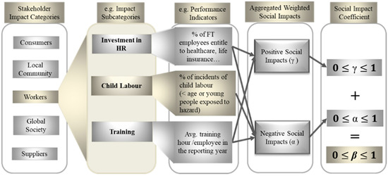 The Functional Unit (FU) enables comparison of processes, products, and systems depending on the sustainability level at which the study is being conducted. According to Chang et al. [19], FU is “a measure of performance of the functional outputs of the studied process and it relates to specific inputs and outputs, the time range and the impact categories”. For example, let us consider a hypothetical scenario below and follow the procedure for calculating the social impact coefficient (SIC) to detail each phase of the process.