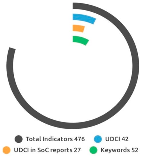 From a total of 476 indicators gathered from eight reports, it was found that the frequency of usage of indicators ranged from one to four times among the eight reports analyzed. To define the list of UDCI, 41 indicators within the higher frequencies (3 and 4) were retained (See Table 3). The shortlist shows that 88% of the indicators were used three times, whilst only 12% of the indicators could be found in the maximum number of four reports. These frequencies of use exemplify the lack of consensus around monitoring methodologies for urban development, but also a significant disagreement on the definition of concepts commonly handled in the discipline, as highlighted by other studies.